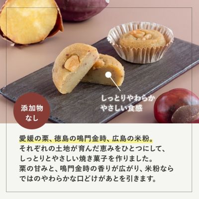 あんぽ柿と柚子あんのバランスが絶妙な「柿中柚香」、100%和栗を使用し、栗の持つまったりと濃厚な味を最大限活かした「ほくほ栗」、愛媛県の栗と、徳島県産の鳴門金時を使用し、しっとり焼き上げた焼き菓子「kuri-mo(くりーも) 」の詰合せです。