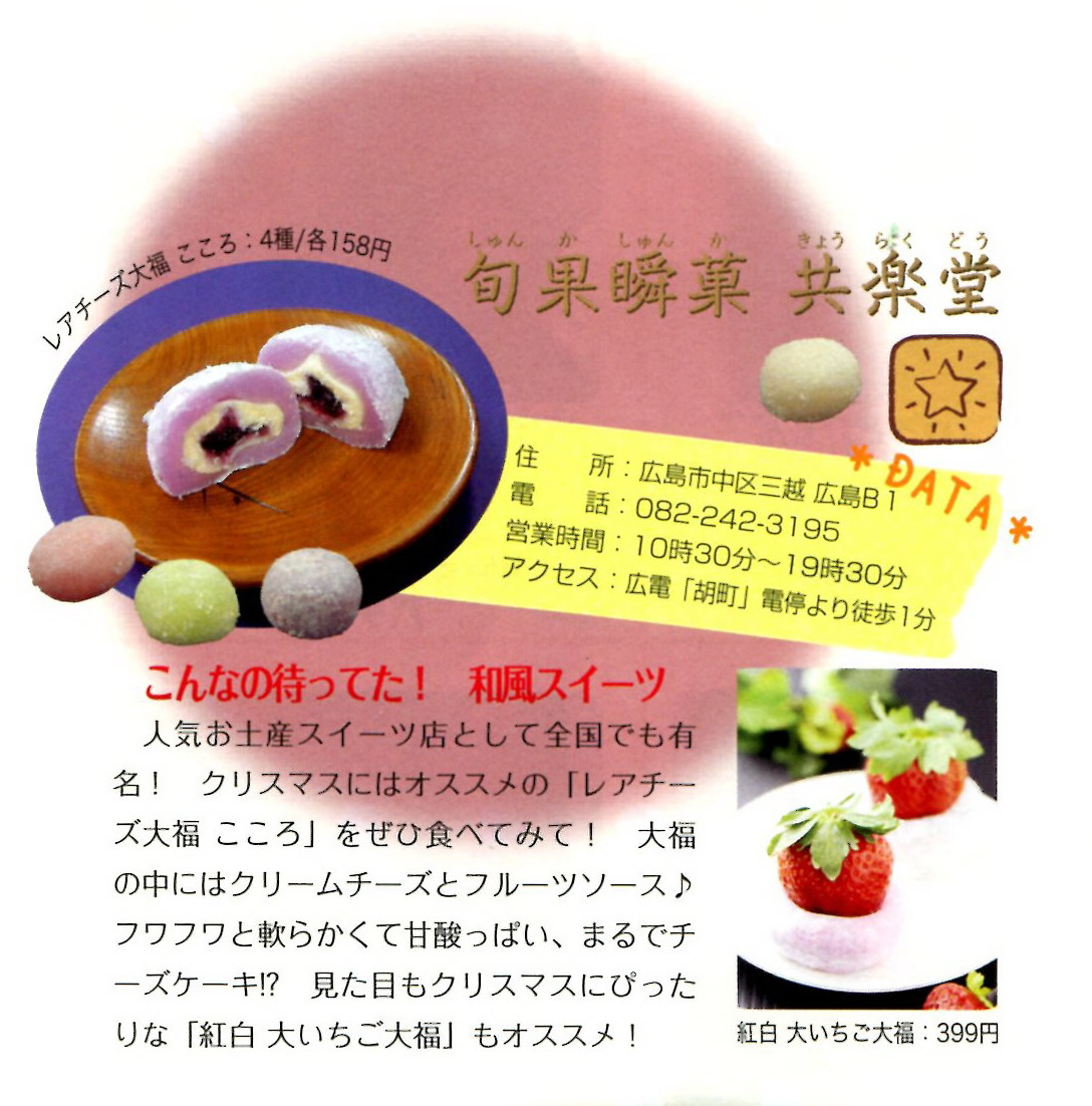 広島の子育て情報マガジンFunFANFun[ファンファンファン]12月号にて「レアチーズ大福CoCoRo」、「大いちご大福」が紹介されました。