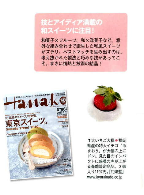 マガジンハウス「Hanako」東京スイーツ特集号に大いちご大福が紹介されました。
