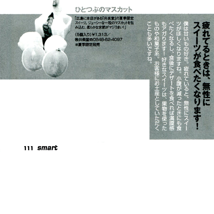 宝島社「smart」 3月号(1月23日発売)にひとつぶのマスカットが紹介されました。