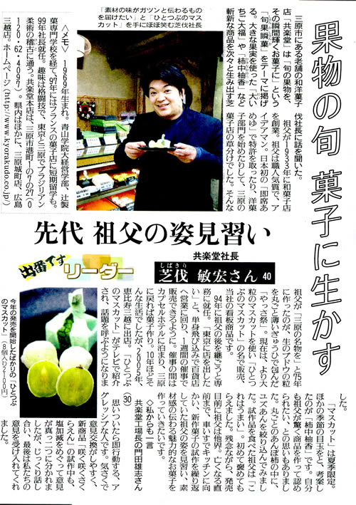 読売新聞「ひろしま県民情報」4月28日第254号に社長芝伐が紹介されました。