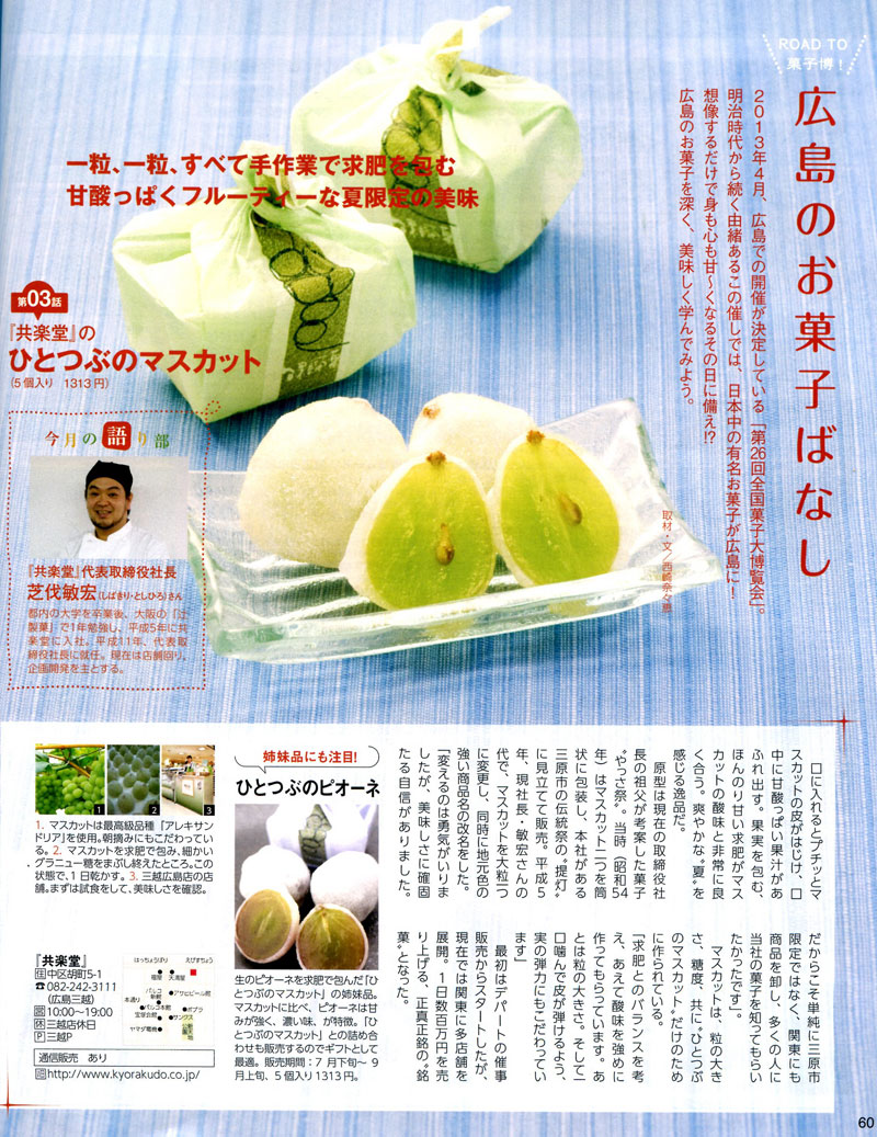TJHiroshima「月刊タウン情報ひろしま」8月号に「ひとつぶのマスカット」が掲載されました。