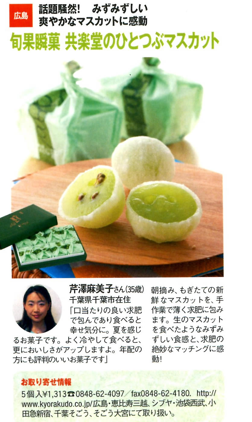 主婦の友社「mina」5月号(4月20日発売)絶品ひんやりスイーツお取り寄せ図鑑にひとつぶのマスカットが紹介されました。