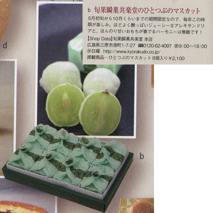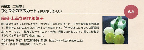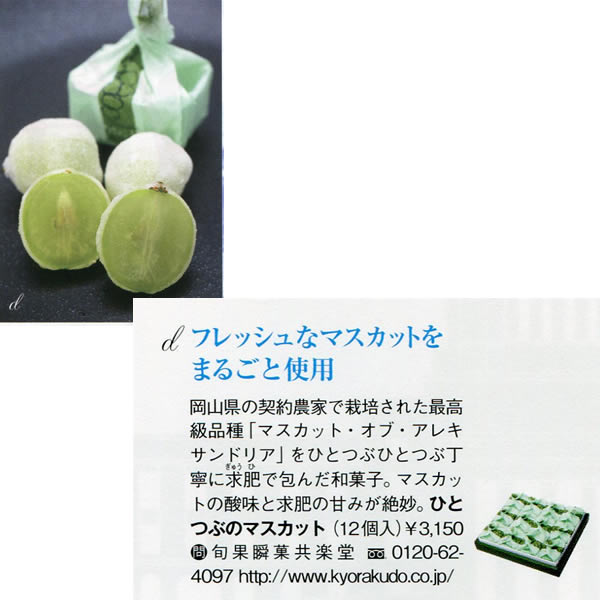 6/30販売の雑誌、日経おとなのOFF「ニッポン全国のご当地No.1は?」で【ひとつぶのマスカット】が紹介されました。
